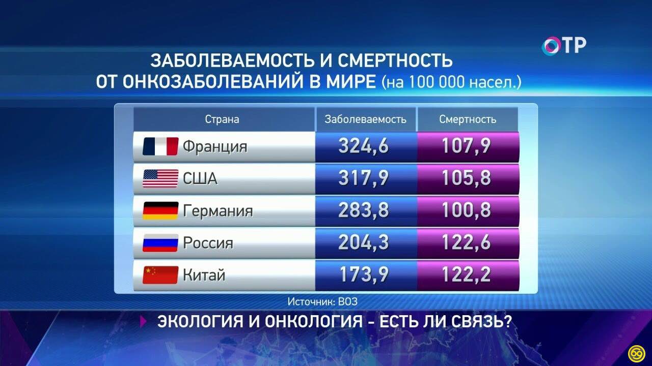 Наибольшая заболеваемость от онкозаболеваний в мире наблюдается во Франции.